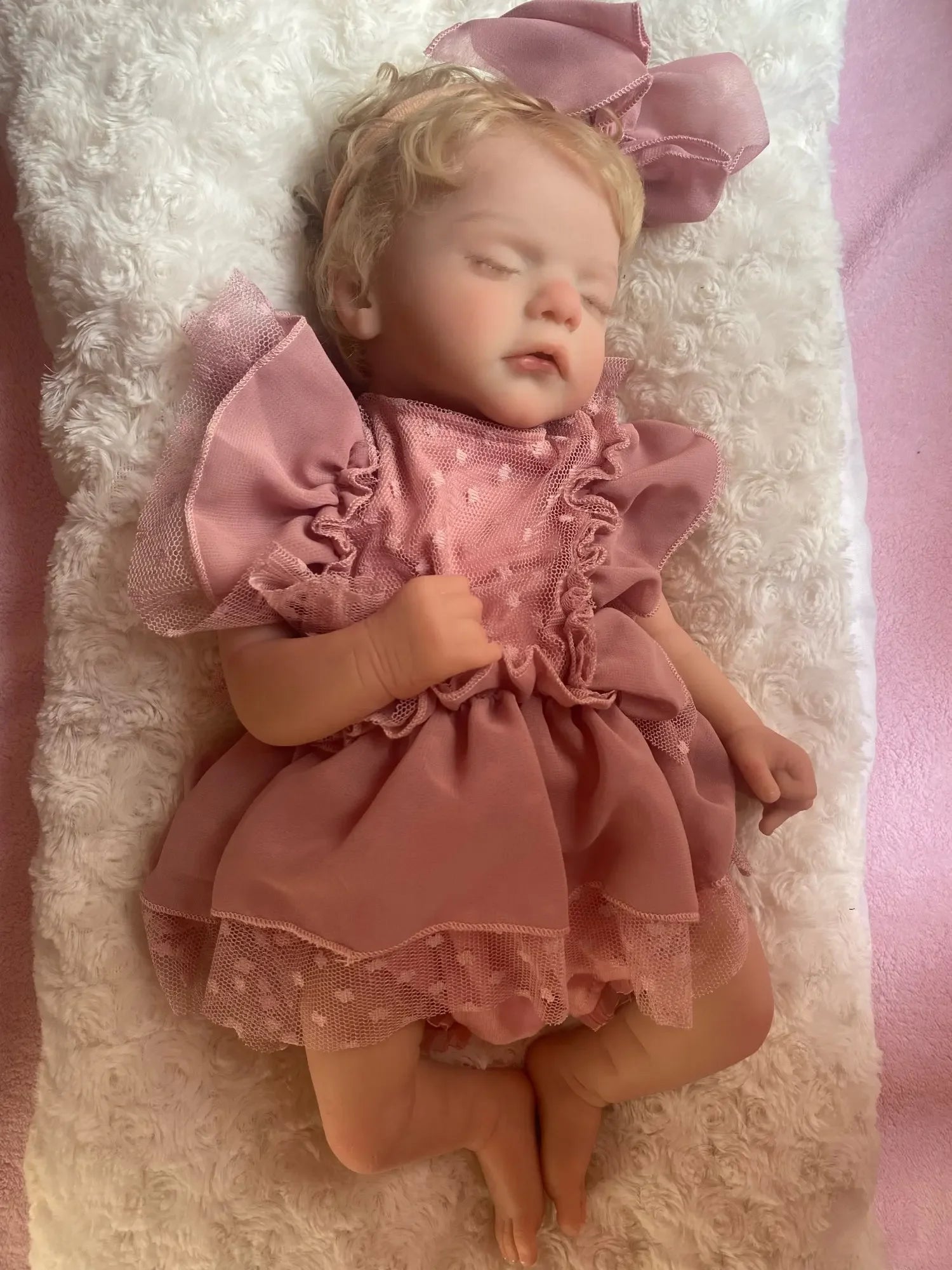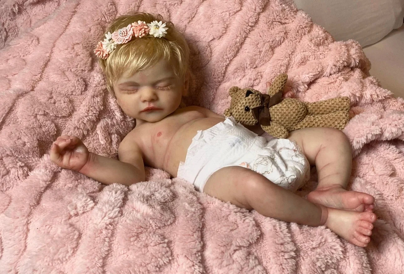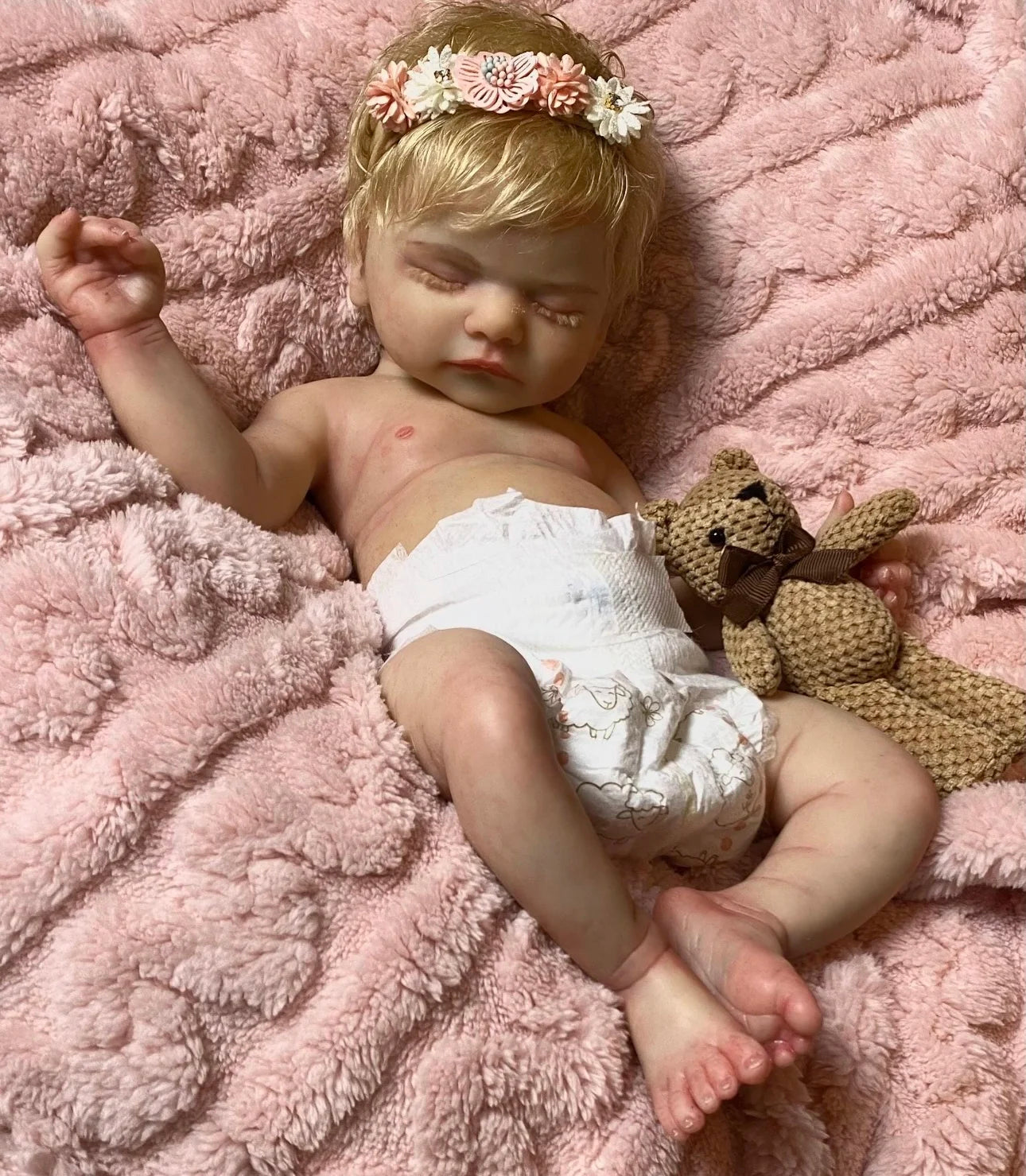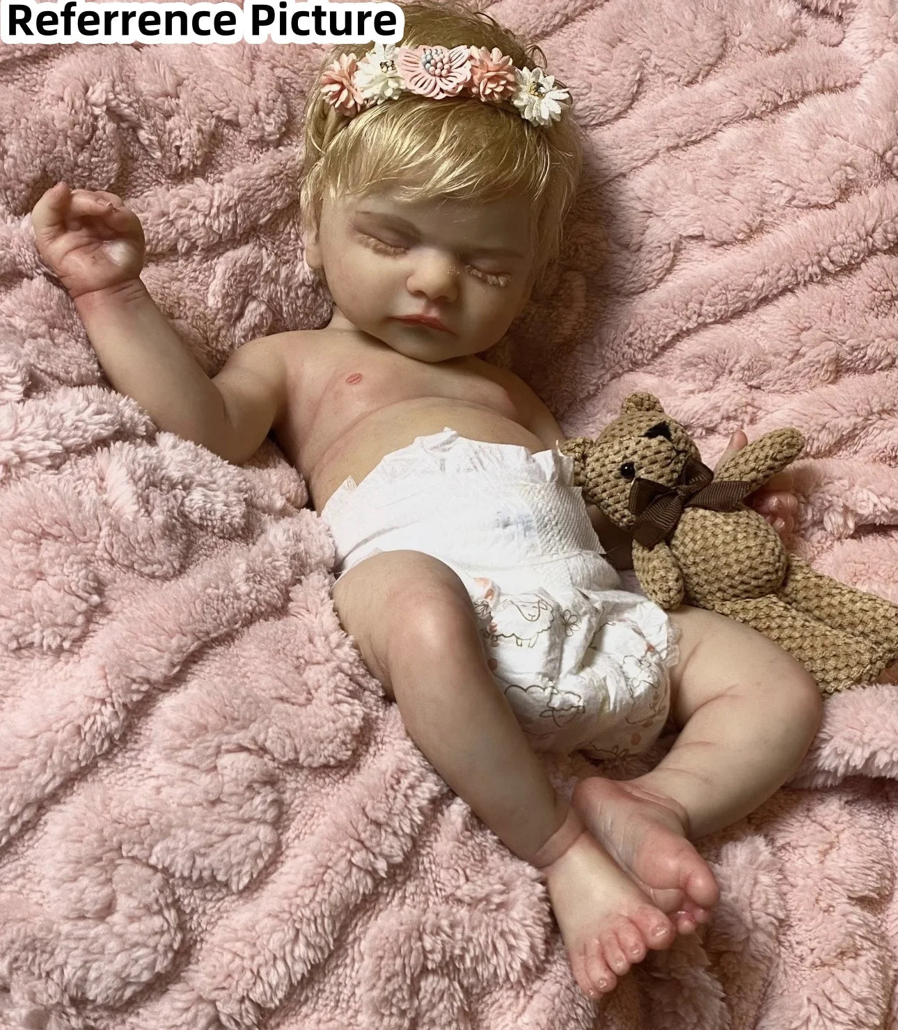 Lovely 18 Inch Silicone Reborn Girl Doll With Rooted Blonde Hair Handmade Waterproof Soft Touch Feeling Bebe Reborn Doll