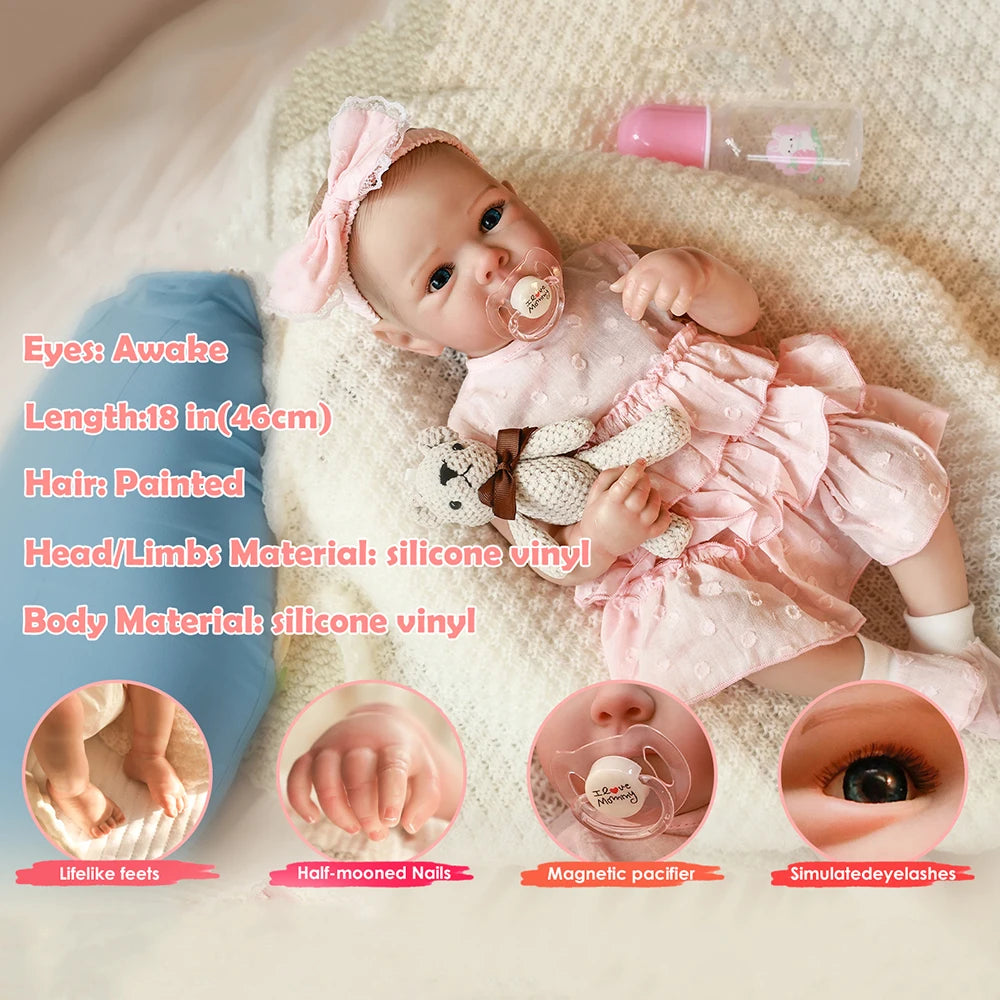 Lovely 18 Inch Silicone Reborn Girl Doll
